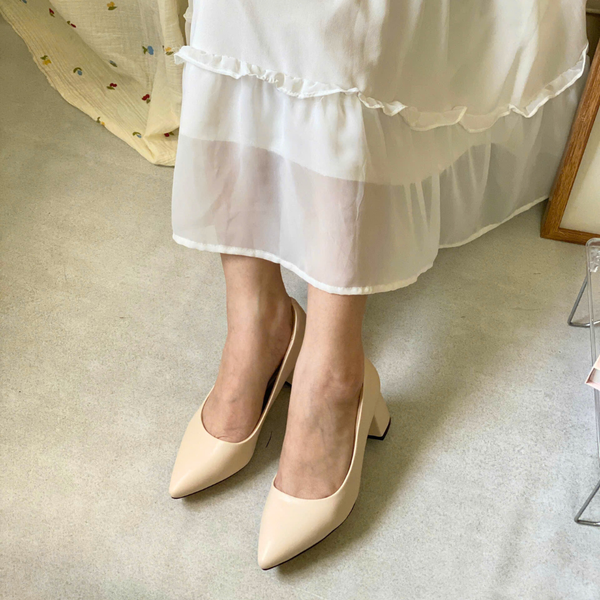 Giày Nữ cao gót công sở màu kem 3F